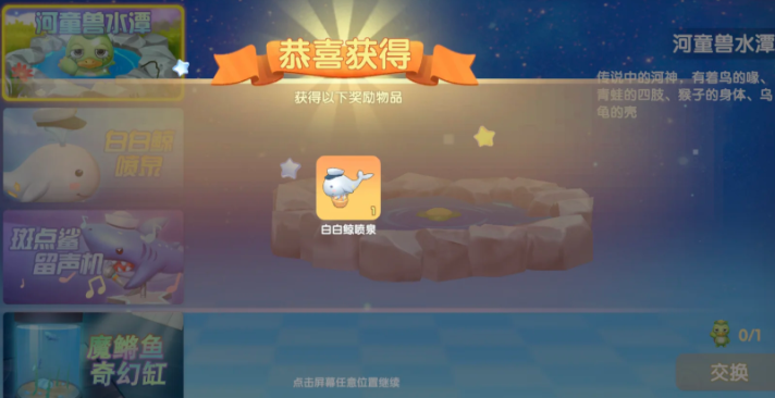 兑换完喷泉后,回到家园找个宽敞的地方摆放,建议选在水域附近更搭配它的海洋生物特性。白白鲸喷泉体积比较大,如果随便放可能会挡住其他装饰或功能区,提前规划好位置很重要。摆放时注意调整朝向,让它面向庄园入口或中心区域会更醒目。周围可以搭配些贝壳、海星之类的小装饰,营造出海洋主题的小角落,这样整体看起来会更生动。