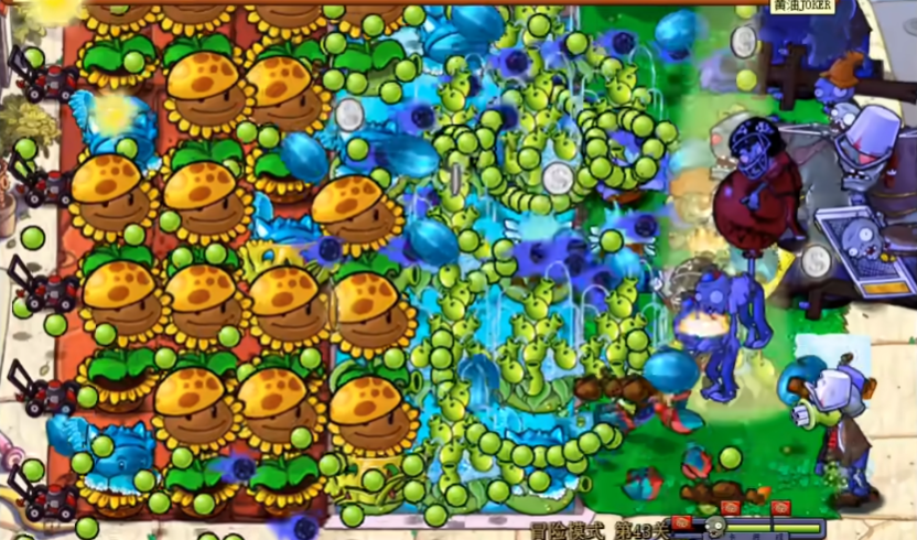 后期需将防线重心转向全屏控制,在瓦片区域补齐两列冰瓜大喷菇,确保每条路线均有减速覆盖。水路需维持至少一列高兵菇配合磁力坚果,同时保留寒冰香蒲的减速效果。当最后一波僵尸来袭时,可适时使用影流窝瓜王清理密集敌群,但需避免在关键防御位置留下种植空档。