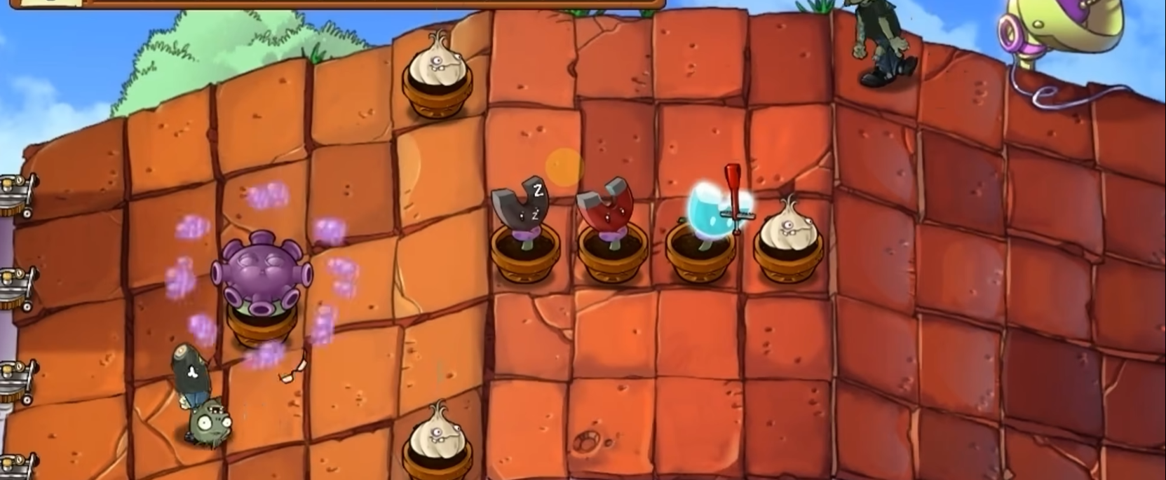 对付跳跳僵尸最有效的办法就是提前准备好磁力菇,这宝贝能直接吸走它的弹跳杆,让它变成普通小僵尸慢悠悠走路。记得给磁力菇套上南瓜头保护一下,毕竟它可是咱们防线的核心。后排记得种上豌豆射手或者西瓜投手这些输出型植物,等跳跳僵尸被缴械后就能轻松解决啦。