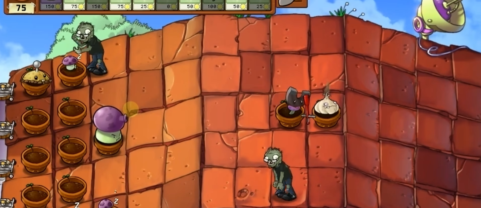 屋顶关卡要特别注意格子高度,卷心菜投手和玉米投手是不错的选择。最后几波可能出现大量跳跳僵尸,提前种好高坚果以阻挡跳跳僵尸给出时间输出。末日菇可以留到关键时刻清场,但要注意别炸到自己植物。多试几次调整节奏,熟悉僵尸出现规律后就能稳过。