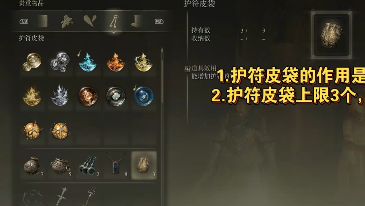 饰品栏的增加需要通过获取护符皮袋来实现。初始状态下,你只能装备一个护符,但随着游戏进程推进,最多可以解锁四个饰品栏位。护符皮袋是特殊道具,每获得一个就能多装备一个护符。关键获取方式包括击败特定Boss或完成剧情任务,比如击败恶兆玛尔基特、接肢葛瑞克和满月女王后,进入大赐福与解指老妪对话,以及击败初代艾尔登之王葛孚雷。