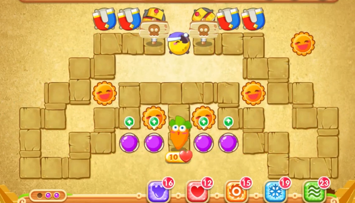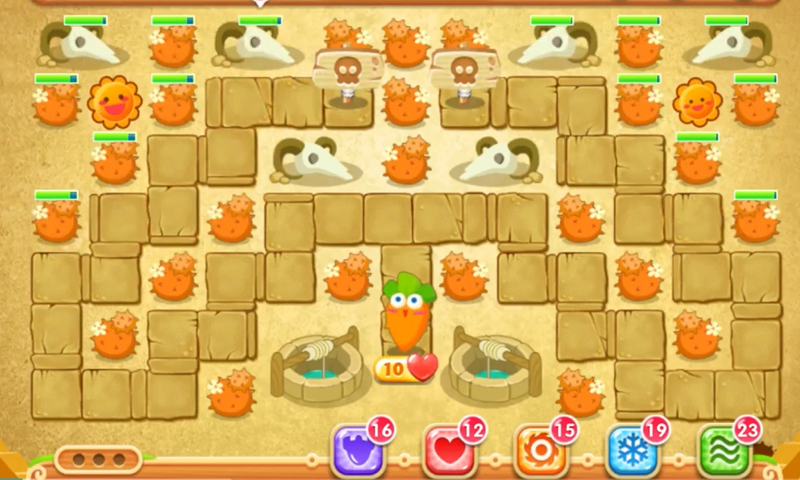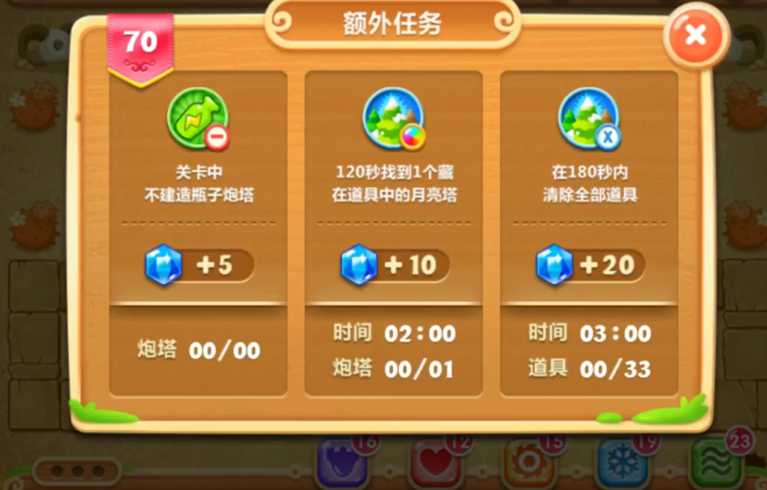 保卫萝卜第70关作为沙漠主题的高难度关卡,其核心挑战在于同时完成三个额外任务:禁止建造瓶子炮塔、120秒内找到隐藏的月亮塔以及180秒内清除全部道具。开局需在左右两侧怪物出口各放置太阳花炮塔,优先升级左侧太阳花至满级,利用其范围伤害快速清理周边障碍物。右侧障碍清除部分后,立即在右上角羊骨头位置建造魔法球炮塔,集中火力击破该障碍可获得隐藏的磁铁炮塔,显著提升金币获取效率。
