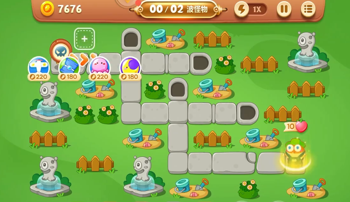 轻松通关公园58关,关键在于前期快速积累金币和合理搭配炮塔。这关波数较少,所以咱们得抓紧时间在开局阶段多建炮塔。建议先在左上角放1个章鱼、1个月亮和2个飞机,这样能快速清理第一波怪物。记得优先清除带金币标志的障碍物,每个能提供150金币呢!中间位置可以放3个飞机和1个章鱼,这样能更快获取空格和金币。等障碍物清得差不多了,就在上方多放章鱼,配上少量月亮减速,下方则重点放飞机作为主力输出。
