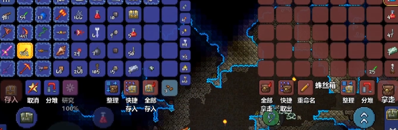 蜘蛛洞的生成具有随机性,地图上通常数量有限,需要耐心探索。建议沿着出生点向下挖掘并横向搜索洞穴区域,使用危险感药水能显著提高寻找效率。喝下危险感药水后,周边陷阱和蛛网会发出闪光,大片的发光蛛网区域往往就是蜘蛛洞所在位置。蜘蛛洞偶尔会包含蛛丝箱,这些宝箱可能生成蜘蛛丝吊绳等特殊物品。