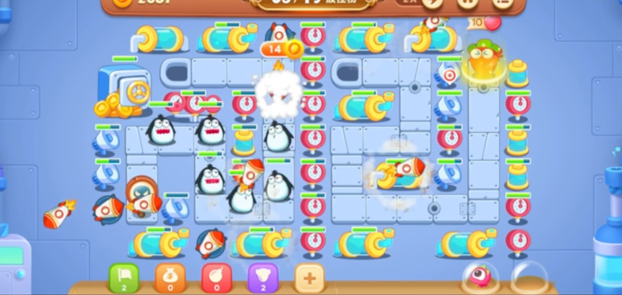 若追求金萝卜或全清成就,需在前期快速清理障碍物获取隐藏炮塔,并严格控制经济分配。隐藏炮塔如风扇或导弹能大幅提升输出效率。关卡整体难度适中,但需避免过早消耗金币在非核心区域,合理利用暂停功能规划建造顺序是通关关键。