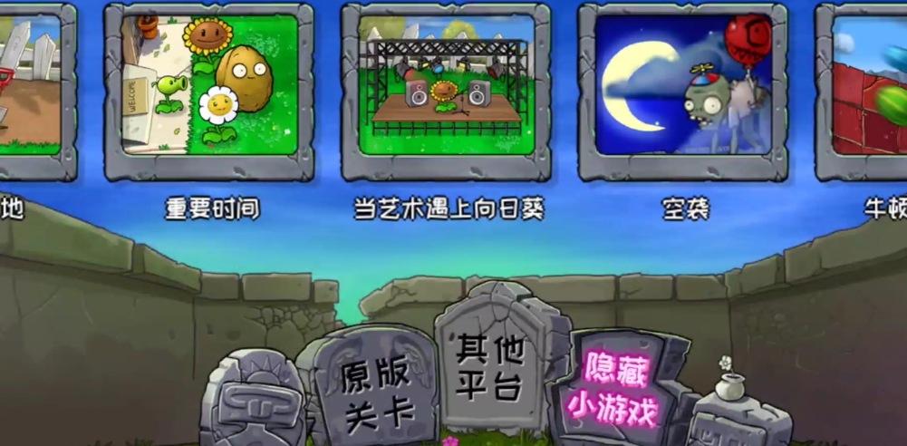 其实方法很简单,只要跟着步骤操作就能找到那些藏在游戏深处的趣味关卡。首先打开游戏主界面,点击玩玩小游戏选项,这时候别急着开始游戏,把鼠标慢慢移动到屏幕最下方,会发现一个平时不太显眼的可点击区域,点击这里就能进入隐藏关卡列表了。这些隐藏关卡包括超乎寻常的压力、空袭、种太阳花的艺术等,每个关卡都有独特的玩法机制等着你去探索。