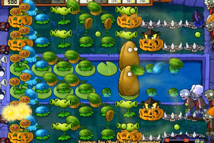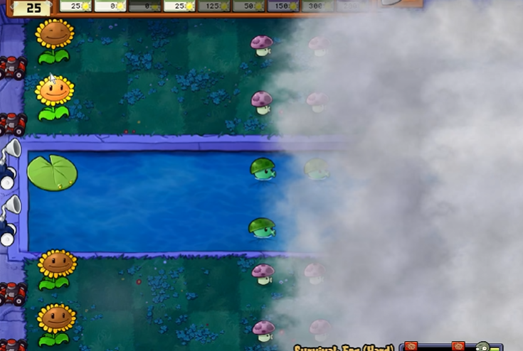 经济是关键,阳光菇和双子向日葵是主力。浓雾模式阳光获取较慢,建议陆地种两排阳光菇,水里放睡莲加向日葵。等阳光稳定后,逐步替换成双子向日葵。别忘了用南瓜保护重要植物,尤其是路灯花和输出位。水路记得种香蒲,它能自动攻击气球僵尸和矿工僵尸,省去不少麻烦。