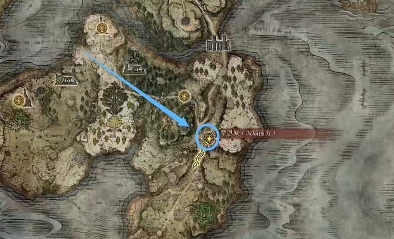 玩家需从亚基尔湖北方赐福点出发,沿道路向南行进至啜泣半岛,抵达摩恩城城墙前方赐福点。在篝火附近可见白色上升气流,骑马进入气流可借助风力跃至高处平台。此处需注意控制灵马跳跃方向,保持与平台边缘横木平行角度,斜向跳跃容易因碰撞体积判定失败。建议在白天进行探索,夜间该区域会刷新骑兵敌人可能干扰获取过程。