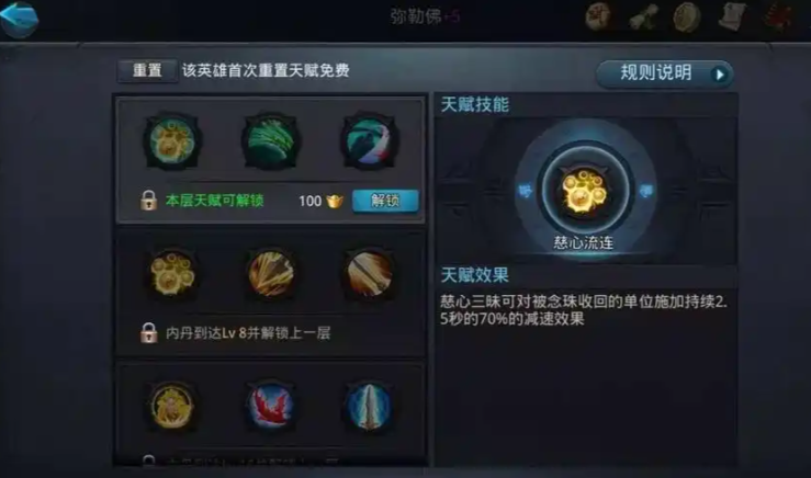 装备方面,冷却缩减和免暴率是核心属性,毕竟技能频率高了才能持续控场。金伞法宝几乎是必备的,减伤和冷却加成能让弥勒佛更持久地站在前线。如果资源有限,优先堆冷却和血量,这样既能抗又能频繁放技能。天赋选择上,优先点出增加生命回复和减防的效果,配合净土技能可以进一步压制对手的生存空间。