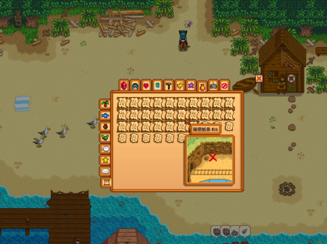 秘密纸条的获取途径多样,包括日常的砍树、挖矿、钓鱼、击杀怪物等活动。砍树时每次斧击有0.5%几率掉落,钓鱼时有8%几率替代垃圾出现,挖蚯蚓则有11%的获取概率。巨大作物被收获时必定会掉落秘密纸条。纸条的掉落完全随机,没有固定顺序,因此建议玩家在获得后立即查看,以免错过重要信息。