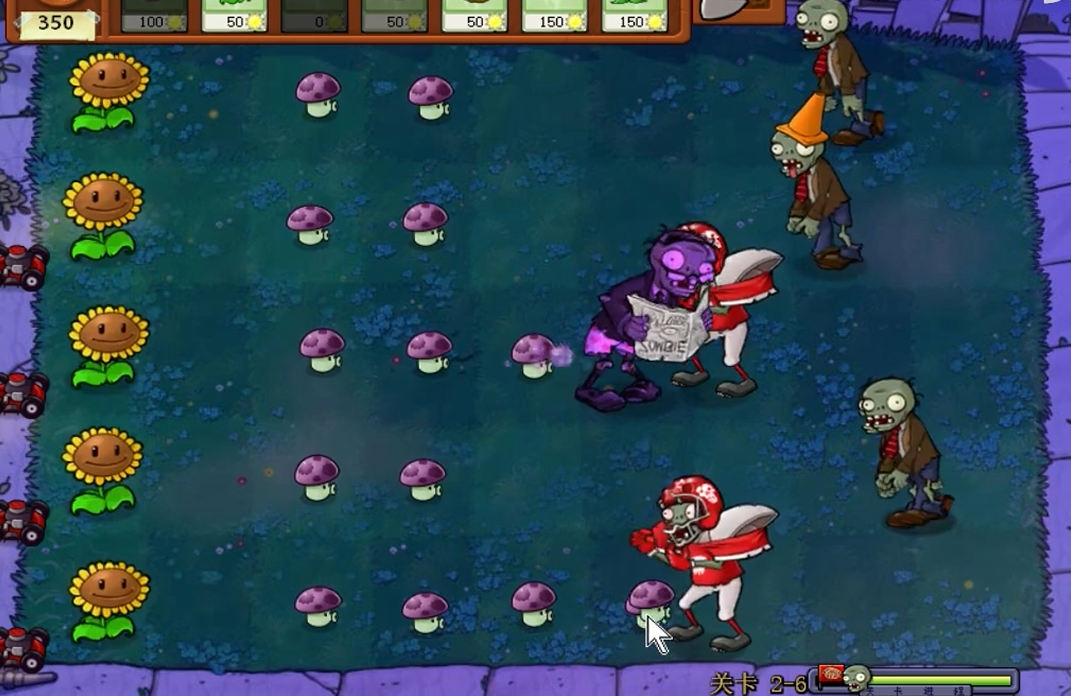最终阶段二爷僵尸移动速度加快,注意保留至少两个能量豆应对突发情况。传送带植物补充速度可能跟不上消耗,必要时可以牺牲后排小喷菇保全前排大喷菇。阵型被突破时不要慌乱,优先用磁力菇控制关键僵尸的行动。