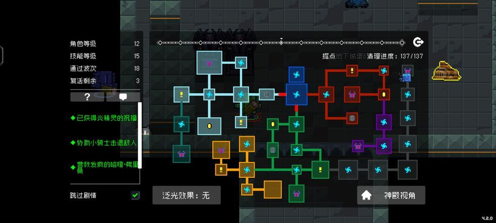 进入守护神殿后,咱们会看到一个全新的地图布局,魔法石就在最中间的位置,需要好好保护它。地图上还会显示各种标记,比如感叹号代表增益事件,牢笼标志是可以解救的NPC,金币区域则是能快速获取资源的地方。右下角的黄色房间比较关键,清理完那里的怪物后,可能会触发特殊任务,比如遇到气宗NPC,击败他还能解锁新角色呢。