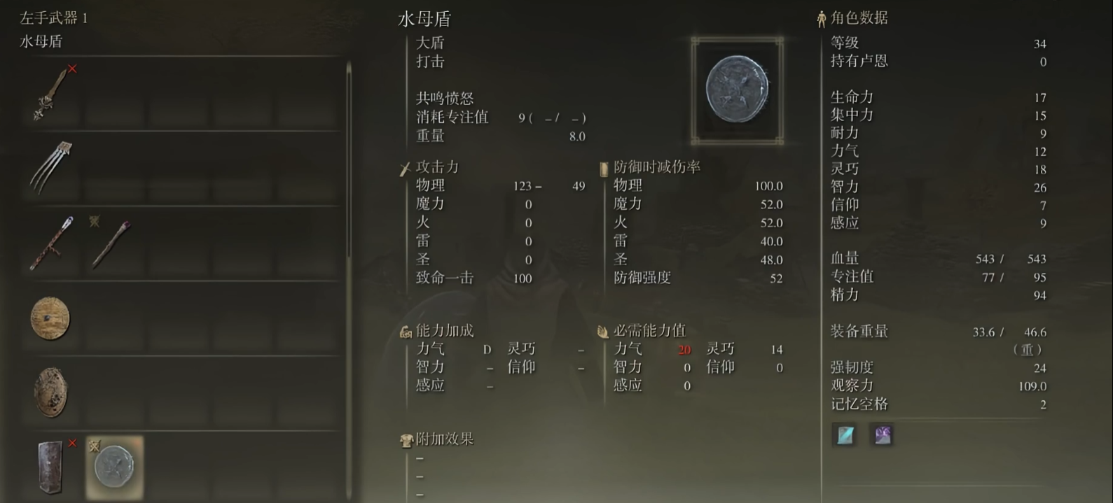后期阶段,智力可以拉到60点,这是智力的软上限,收益会逐渐降低。集中力可以提升到30-40点,配合高级法术的消耗。生命力建议加到30-40点,避免被后期高伤害敌人秒杀。如果等级足够高,可以开始补灵巧到50点左右,进一步优化施法手感。力量属性只需要点到能拿盾牌的程度,比如10-12点,水母盾是不错的选择,能提供额外增伤效果。