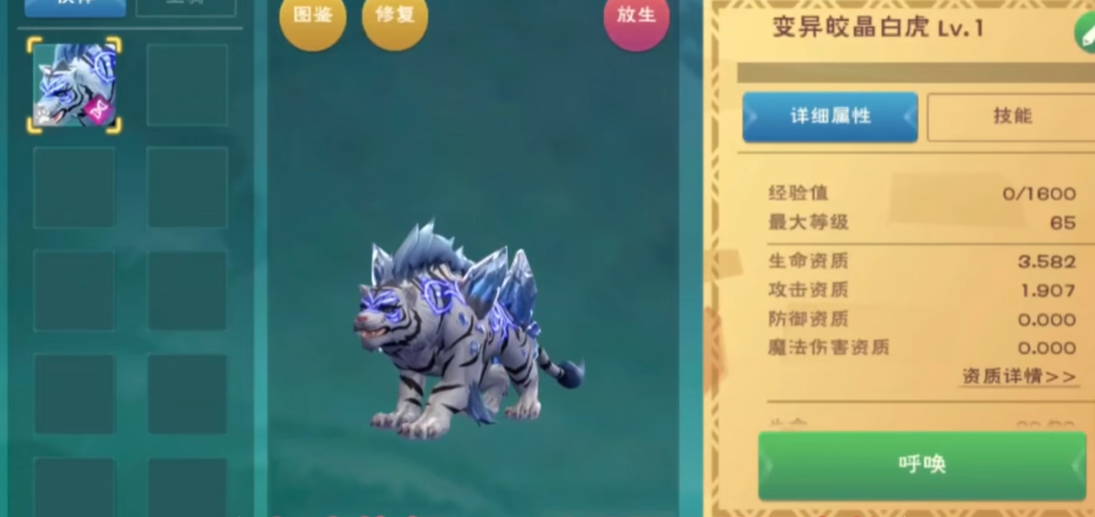 蛟晶白虎是创造与魔法中一种高强度的融合宠物,其合成过程分为四个阶段,需要依次融合剑齿虎、岩虎、岩晶虎和邪晶虎,最终与岩火剑齿虎王结合而成。整个流程对宠物资质、等级和融合材料有严格要求,且需消耗大量高级宠物粮与融合石。