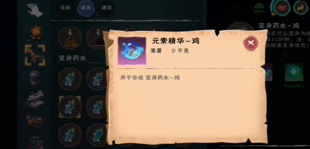 变身药剂是一种能让玩家短暂变成动植物或物品的特殊道具,其核心制作材料为元素精华和魔晶。元素精华需通过击杀小动物或采集砍伐概率获取,而魔晶则主要通过夜间击杀小鬼头或开启宝箱获得。制作时需在工作台将50个魔晶与对应元素的精华合成,不同变身效果需匹配特定类型的精华。