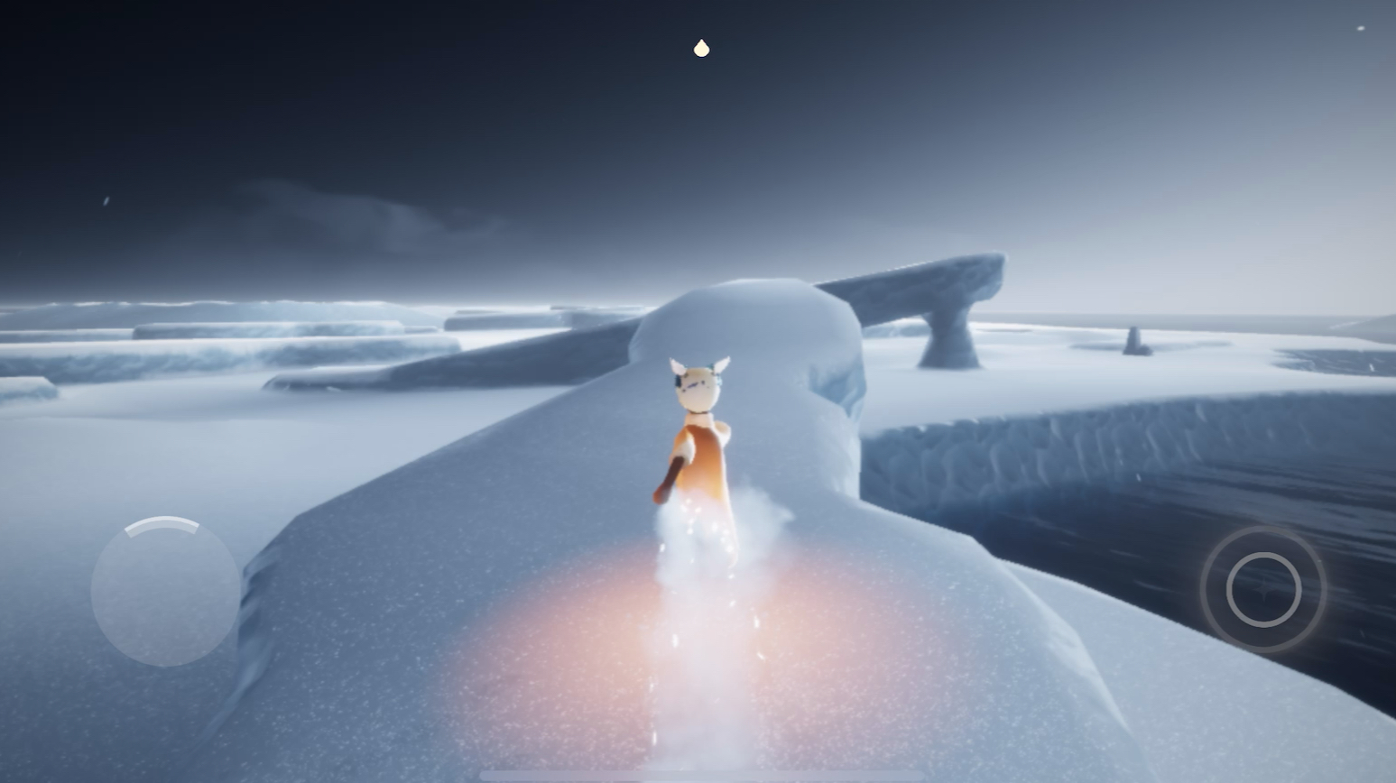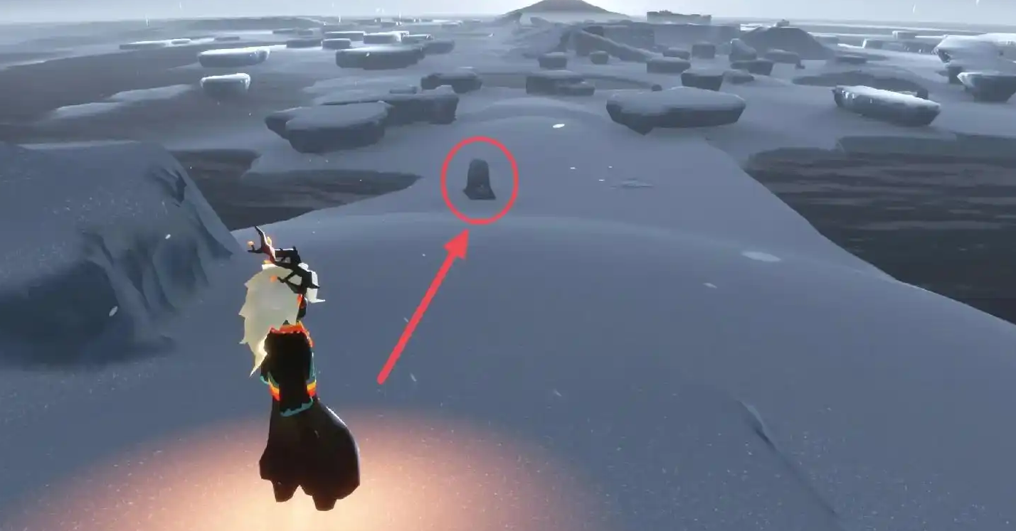 沿着冰川边缘走到对面,跳到石板上激活第六个石灯。继续前进时要把握好跳跃时机,石板之间的距离有点远,建议在湖水刚开始退潮时就起跳。到达圆形平台后难度会增加,需要连续跳跃浮冰。每个浮冰都是存档点,但比较滑容易掉入水中,最好在潮水未完全落下时就开始移动。