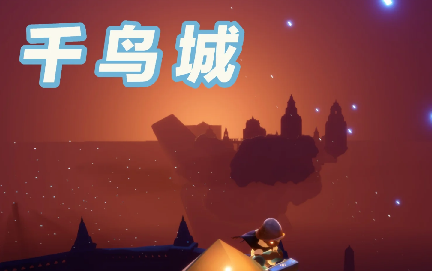 接近千鸟城时场景会逐渐变暗或变亮,取决于是否提前触发神庙光圈。若未打坐直接抵达则为黑夜模式,反之则为白昼模式。最终降落点建议选择主城外围的环形平台,该区域视野开阔且无碰撞风险。调整镜头角度可拍摄到完整的城堡结构与背景星空或霞光。返程时需注意原路折返可能触发风墙,建议直接使用遇境传送或从千鸟城底部云洞坠入霞谷隐藏区域。