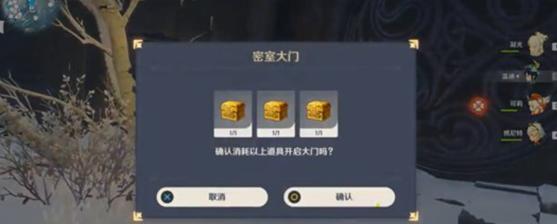 集齐三个匣子后,需从雪山七天神像向南飞行至悬崖边缘,可见隐藏山洞入口。密室大门位于山洞内部左侧,将匣子放入机关即可开启。密室内含有珍贵宝箱及成就奖励,建议携带火系角色应对可能出现的冰属性敌人。整个探索过程需注意严寒值的积累,合理利用篝火和温暖仙灵维持体温。