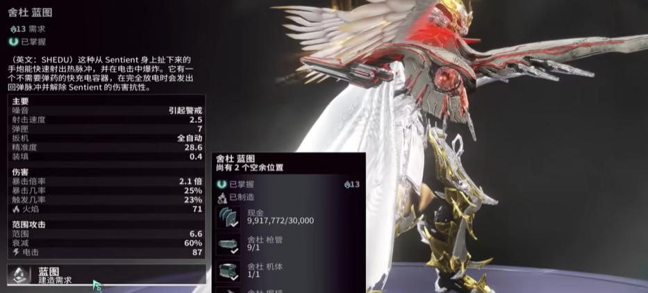 如果觉得刷起来太费时间,也可以考虑和其他玩家交易。舍杜的四个部件都能交易,用游戏内的白金就能买到。不过白金得通过正规渠道充值获得,别想着走捷径。万一不小心把蓝图卖了,还能去中枢Simaris那里花10万声望重新买回来。共生使是铁制装甲,用腐蚀伤害打它效果更好。