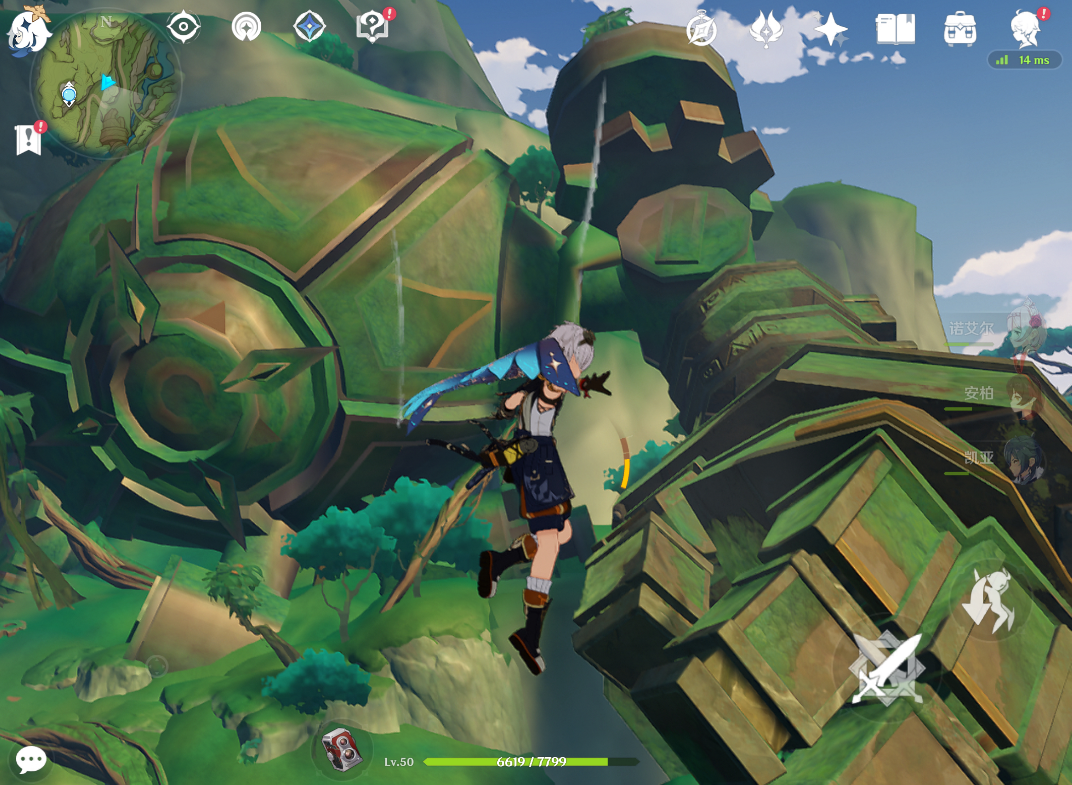 成功点亮石柱后,地窖入口就会轰隆隆地打开。不过别高兴太早,里面沉睡的遗迹守卫大哥会被吵醒。建议提前准备好火系或雷系角色,这家伙虽然看着笨重,但转起圈来可疼了。绕着它打转输出比较安全,注意躲避它的激光和砸地攻击。