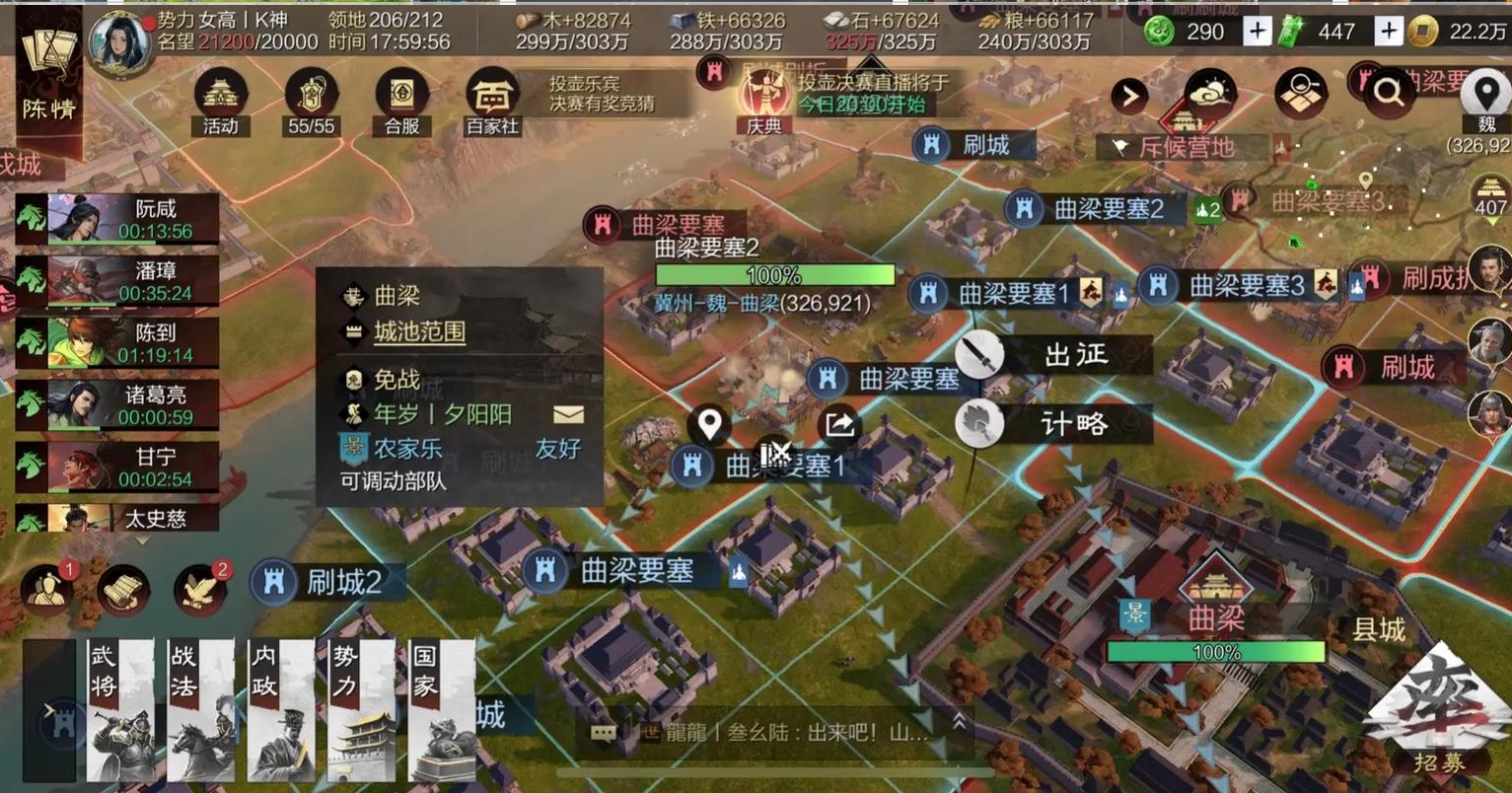 首先需要确保名望值达到4000才能解锁建造权限,之后每增加500名望可多建一个要塞。建造时要准备好木材8000、铁矿8000、粮草8000、石料1万以及5个政令。找到已占领的土地点击筑城,选择要塞类型并命名,等待4小时30分钟就能完成建造。如果赶时间可以用20虎符立即完成,尤其在攻城战前特别实用。