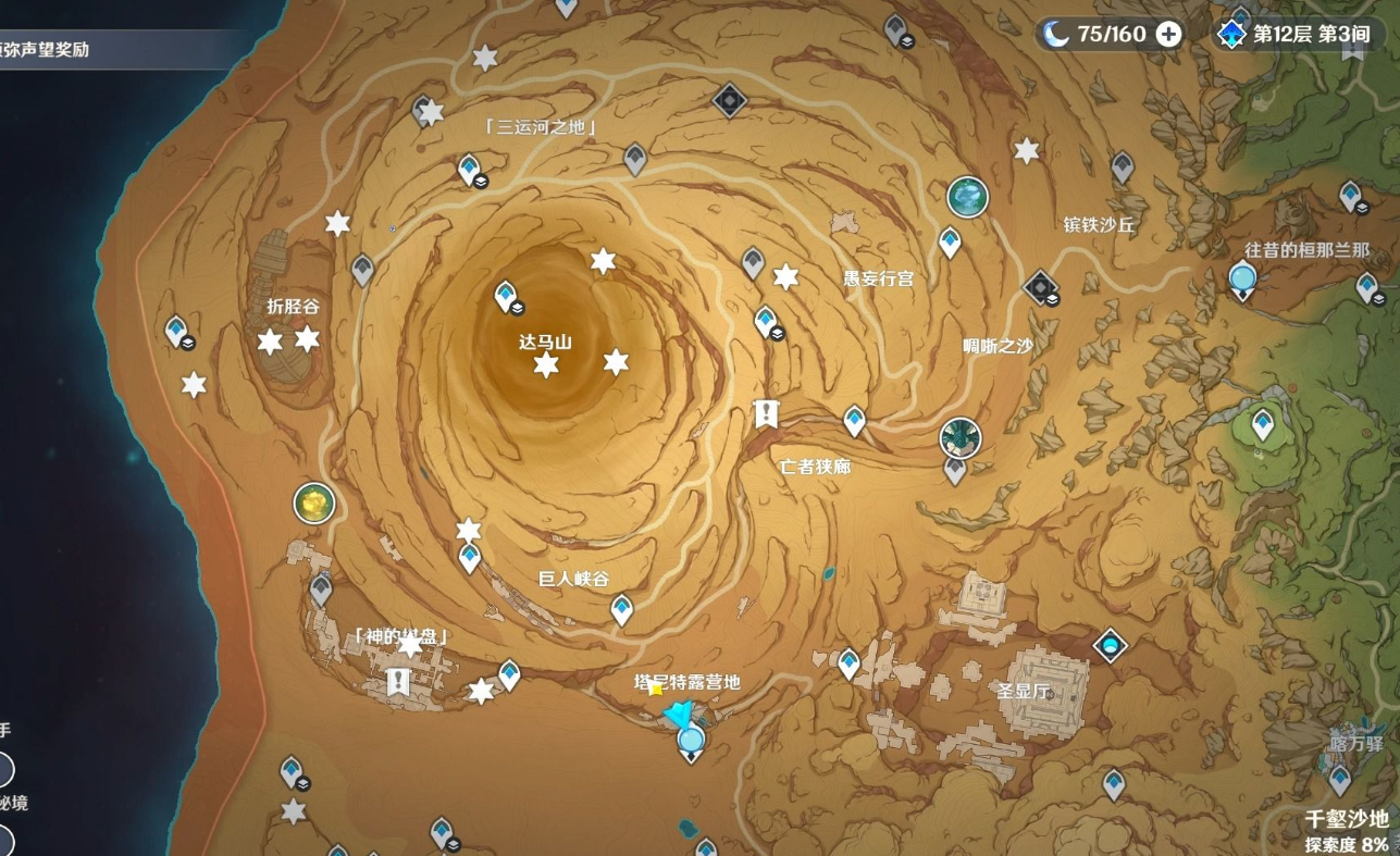 在沙漠的下风蚀地区域,仙灵的位置相对集中,比如山顶、沙堆下方或者地下遗迹的路中间。有些仙灵需要咱们从特定的锚点出发,比如从有黑色大狗雕像的大厅出发,乘坐电梯下去就能看到。还有一些仙灵藏在峡谷底部或者山洞里,需要咱们仔细探索。如果遇到被关在笼子里的仙灵,记得先完成附近的任务或者解谜,这样才能释放它们。