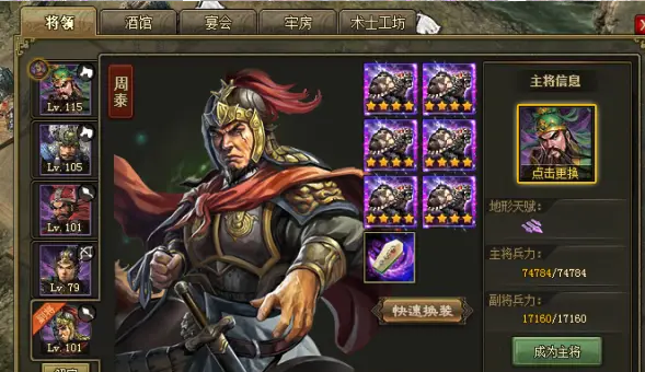 周泰虽无战法但全地形适应性强,搭配战车系统可叠加增益效果。陆逊觉醒后拥有玉石俱焚技能,能与两排敌军同归于尽,适合高强度副本。联合觉醒武将如孙策、赵云等需优先培养,通过消耗酒资源解锁前置觉醒条件,其群体增益效果能显著提升国战和高级副本的胜率。