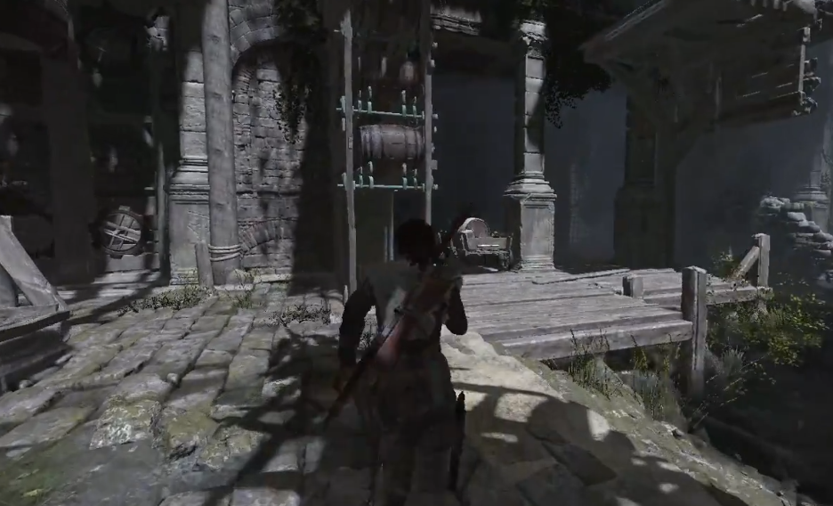 苦痛之屋是游戏里一个设计精巧的古墓挑战,解谜核心是利用配重锤和吊篮搭建通路。进入洞穴后,你会看到主场景是一个庭院,藏宝室在对面二层。先别急着冲仔细观察会发现左右两侧各有一个可操作的机关,其中一个是推车,另一个是控制水流的拉杆。第一步需要拉动拉杆让水流灌入木桶,配重锤会因此下降。