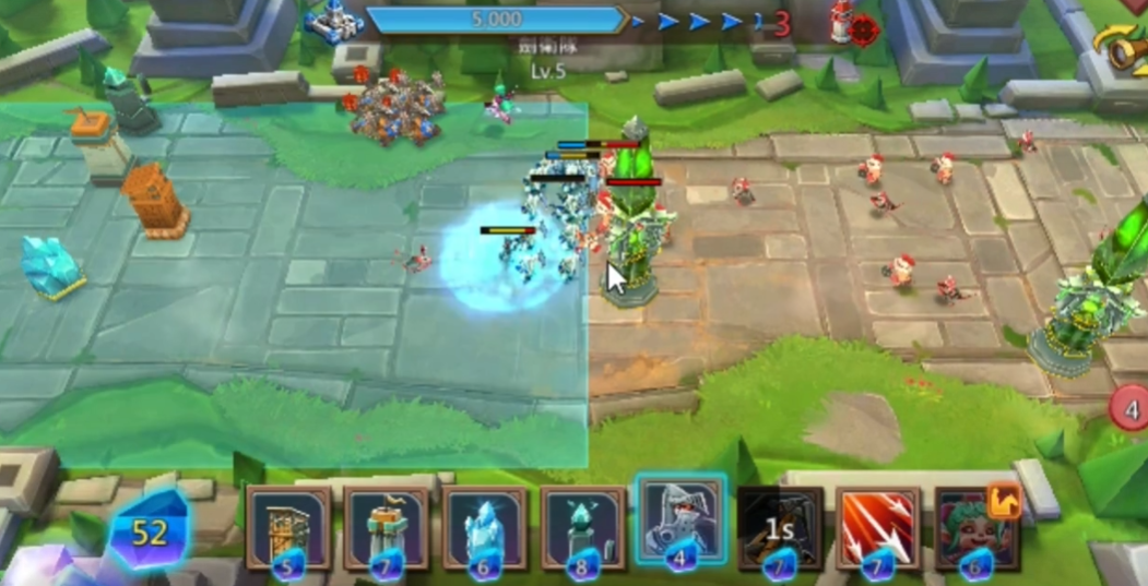 当敌方第一波攻势被化解后,抓住机会在前沿建造防御塔和炮车,逐步推进。这时候要注意技能冷却时间,别一股脑把所有技能都交出去,留一手应对突发情况。如果遇到大量英雄集中进攻,可以用海量步兵配合炮车和魔像来应对,但要注意步兵别冲太猛,否则容易被敌方炮台收割。适当使用旋风技能拆塔,同时用图腾咬住敌方英雄,再补个肉盾英雄保护图腾。