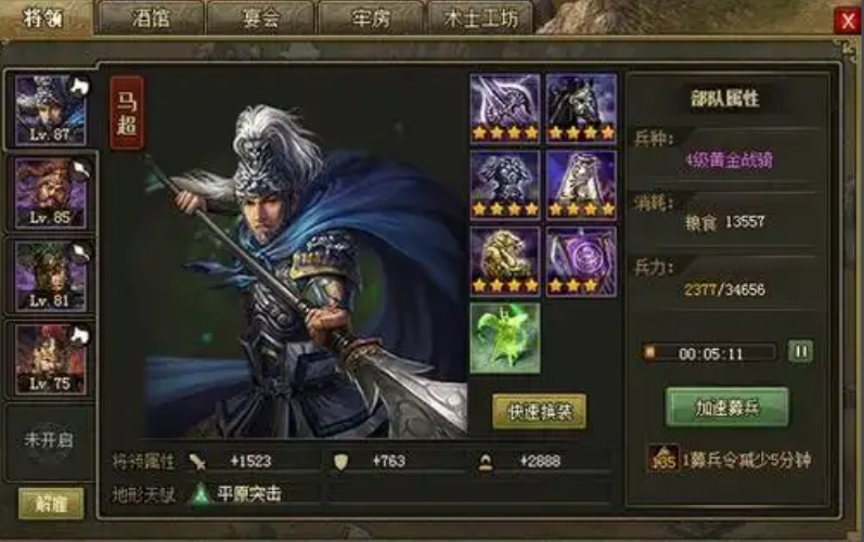 阵容搭配方面,咱们可以优先选择有平原加成的武将,比如马超、徐晃这类能抗能打的角色。战法将甘宁也很重要,他的群体伤害能快速清理小兵。记得把资源集中在主力输出身上,宝石和装备尽量堆攻击和生存属性。战斗中庞统的战法会被抵挡,所以别太担心他的爆发,重点在于稳扎稳打逐个击破。