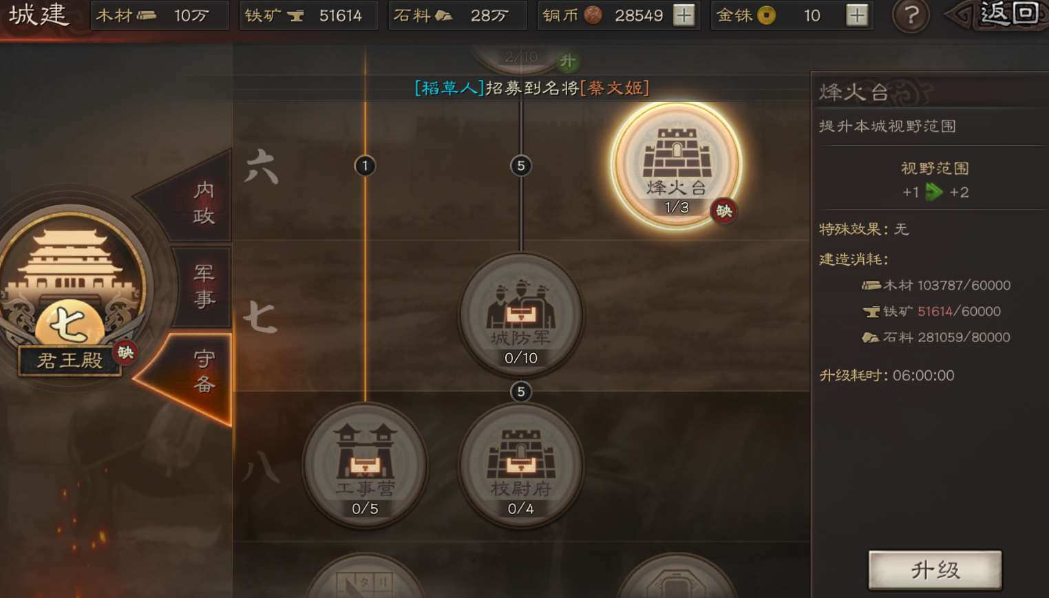 城墙耐久度归零并不意味着彻底失败,关键是要迅速修复城墙和城内设施。进入城市界面找到城墙选项,消耗木材、石料等资源进行修复。城墙每秒会自动恢复1点耐久,但主动修复能大幅加快进程。记得优先修复城墙和关键防御建筑,比如城防军和工坊,这些能有效提升下次防守的成功率。