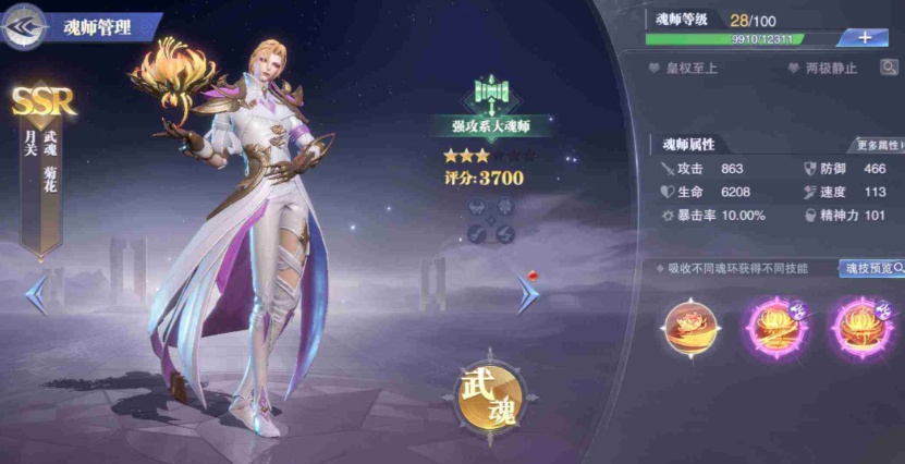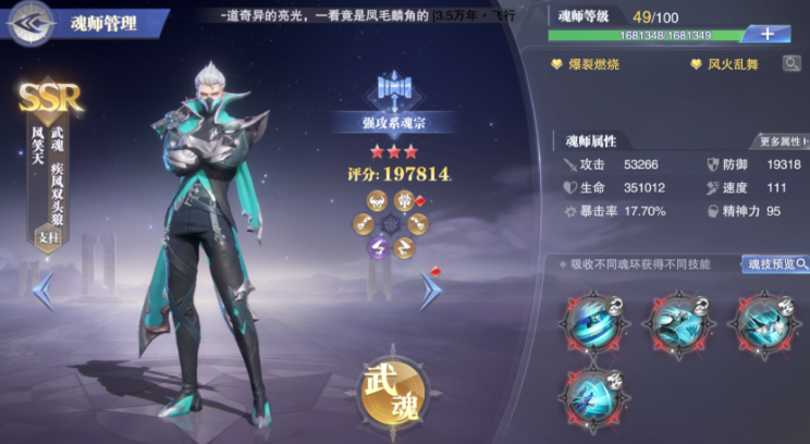 阵容搭配上优先保证魂师间的技能联动。月关的一技能金蕊绒卷刃和二技能橘络满地伤都能群体挂重伤,建议给他配加暴击和速度的魂环。千仞雪的一技能对重伤目标有额外140%伤害加成,魂环选攻击力和暴伤属性。风笑天带擎风加速队伍行动条,还能补40%概率的重伤效果。辅助位选宁荣荣拉条加攻,鬼魅回魂力,这样能保证核心输出不断档。