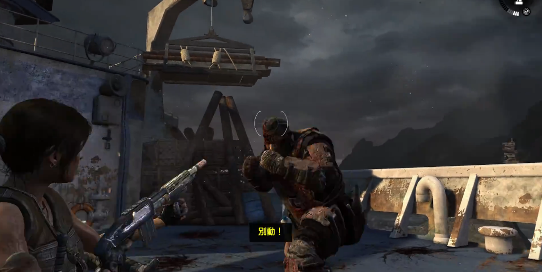 遇到船上的大块头时,咱们首先要保持冷静,别急着冲上去硬刚。先找个箱子躲起来观察情况,这家伙虽然血厚但动作比较笨拙。关键是要瞄准头部攻击,用弓箭或者散弹枪都行,打中几次后会出现绿色提示,这时候就能冲上去用登山镐触发QTE了。记住打头是重点,其他部位伤害不太明显。