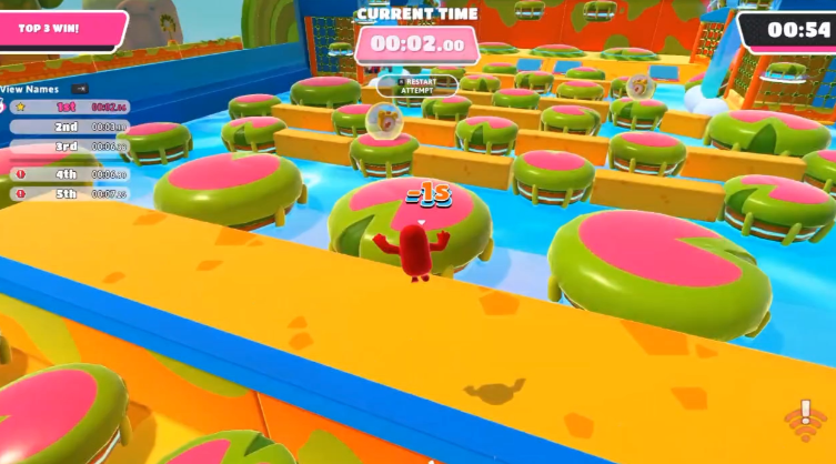 糖豆人终极淘汰赛中,林间跃动(或称丛林跳跃)是一个颇具挑战性的竞速关卡,它要求玩家在充满漂浮荷叶与移动平台的林间栈道上快速前进。成功关键在于掌握精准的跳跃时机与合理的路线规划,整个过程中需要保持冷静,避免因拥挤或失误而坠落。