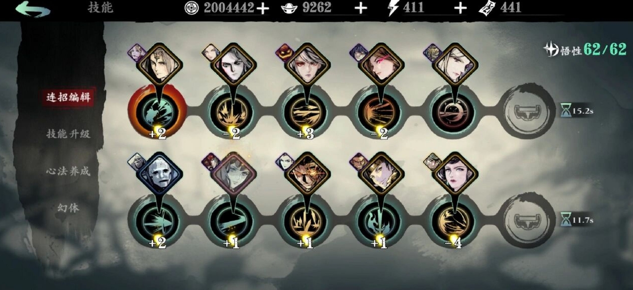 技能链采用双链分工模式,上链为输出链,以金龙剑或暗龙剑为终结技,前置搭配铁龙突击、剑气护体叠加增益与剑意,快速打出爆发伤害,精研重点提升黑龙、多重、暗龙等级,强化终结技伤害;下链为破甲与增益链,配置踏剑而行、月光斩等技能快速破除敌人护甲,衔接至尊龙体觉醒技获得霸体与属性提升,技能释放节奏为先下链破甲叠buff,再切上链打出全套爆发,保证伤害稳定命中且不被打断。