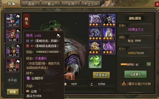 武将站位与套装搭配是通关基础,首发太史慈穿戴真驱虎套装,凭借平原地形优势与双战法特性快速清理前排小兵,压低敌方整体血量,为后续武将减少承伤压力。第二位选用典韦搭配白虎套装,侧重前排承伤与普攻爆发,即便战法被抵挡也能依靠高血量与防御持续输出,稳住战场节奏。第三位马超穿戴真霸下套装,搭配高勇属性宝物,作为抵挡陆逊核心战法的关键位置,依靠77点勇气值大幅提升战法抵挡成功率,这是能否顺利推进的核心节点。收尾选用黄忠或许褚,搭配朱雀套装走爆发路线,在马超成功抵挡后全力释放战法,对陆逊本体完成致命打击。