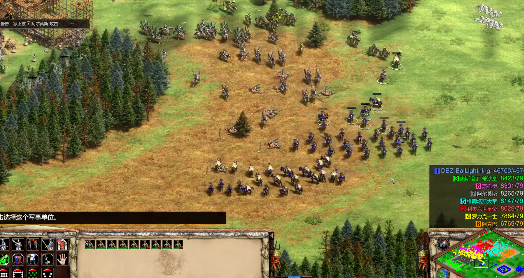 开局核心是吃透猎人快猎+零房运营,把效率拉满。利用猎人效率加成,优先围猎野猪与鹿,村民分工固定为6-7人采木、4-5人采金、其余采食物,侦察骑兵凭借视野优势探图锁敌点,不造房屋节省木材,专注升封建,9分钟左右进封建即占先手。黑暗时代不造兵,资源全砸时代升级,为后续战术铺底。