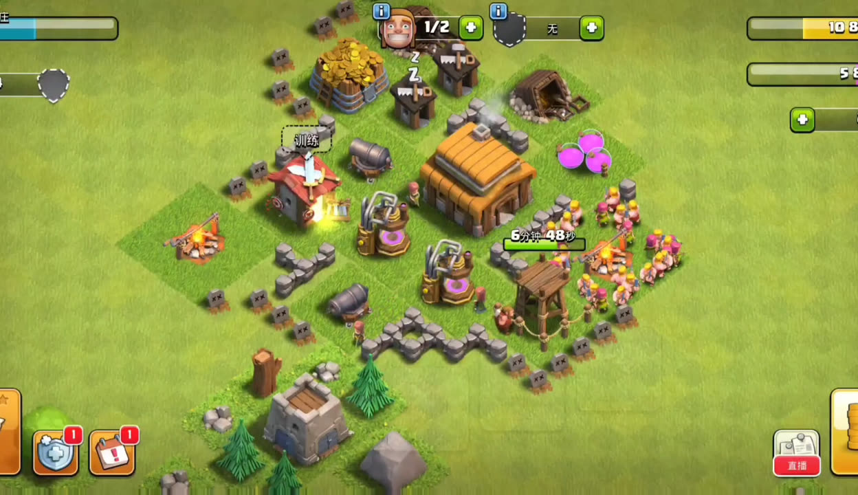 落兵时还要注意分散与集中的平衡,单一位置密集落兵易被敌方范围伤害防御团灭,过于分散则无法形成火力集中,通常采用“主点集中+两侧清边”的方式,主力在中间核心位置密集落兵,左右两侧各下少量部队清理边角建筑,保证大部队直线推进。面对环形阵型,可在对称两侧同时落兵,形成两面夹击;面对密集阵型,选择防御最薄弱的单点突破,集中所有兵力与法术快速撕开缺口。法术的落位也要配合兵种,治疗法术落在肉盾与输出部队密集处,狂暴法术覆盖主力推进区域,冰冻法术精准冻结核心防御建筑,让落兵后的部队输出最大化。