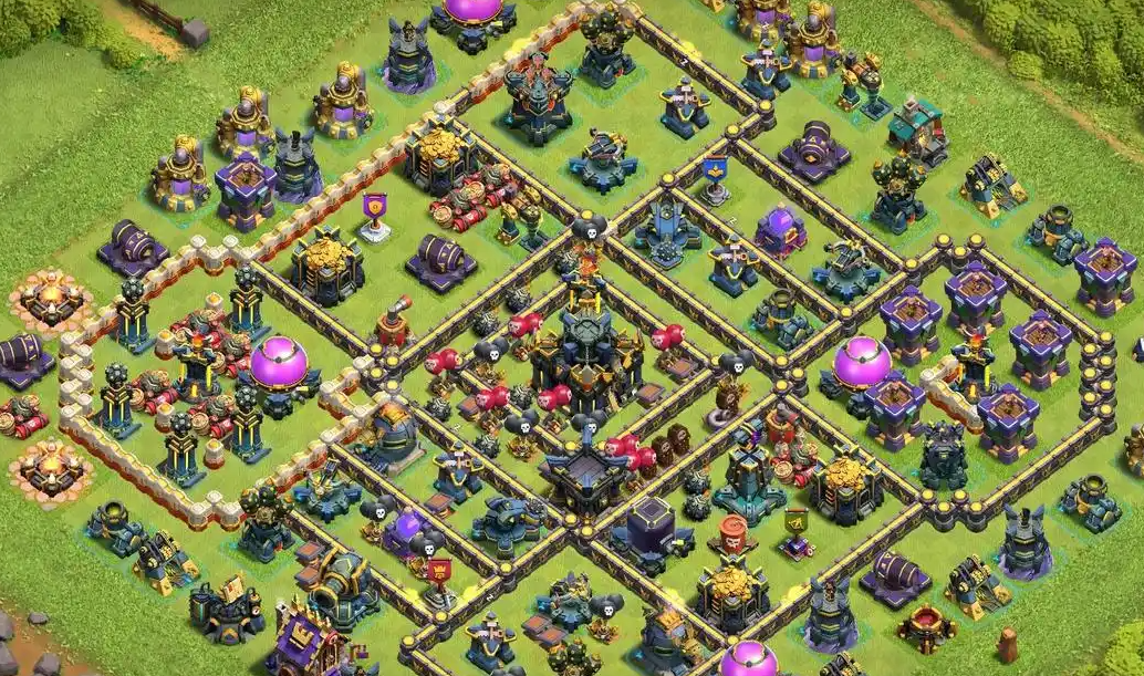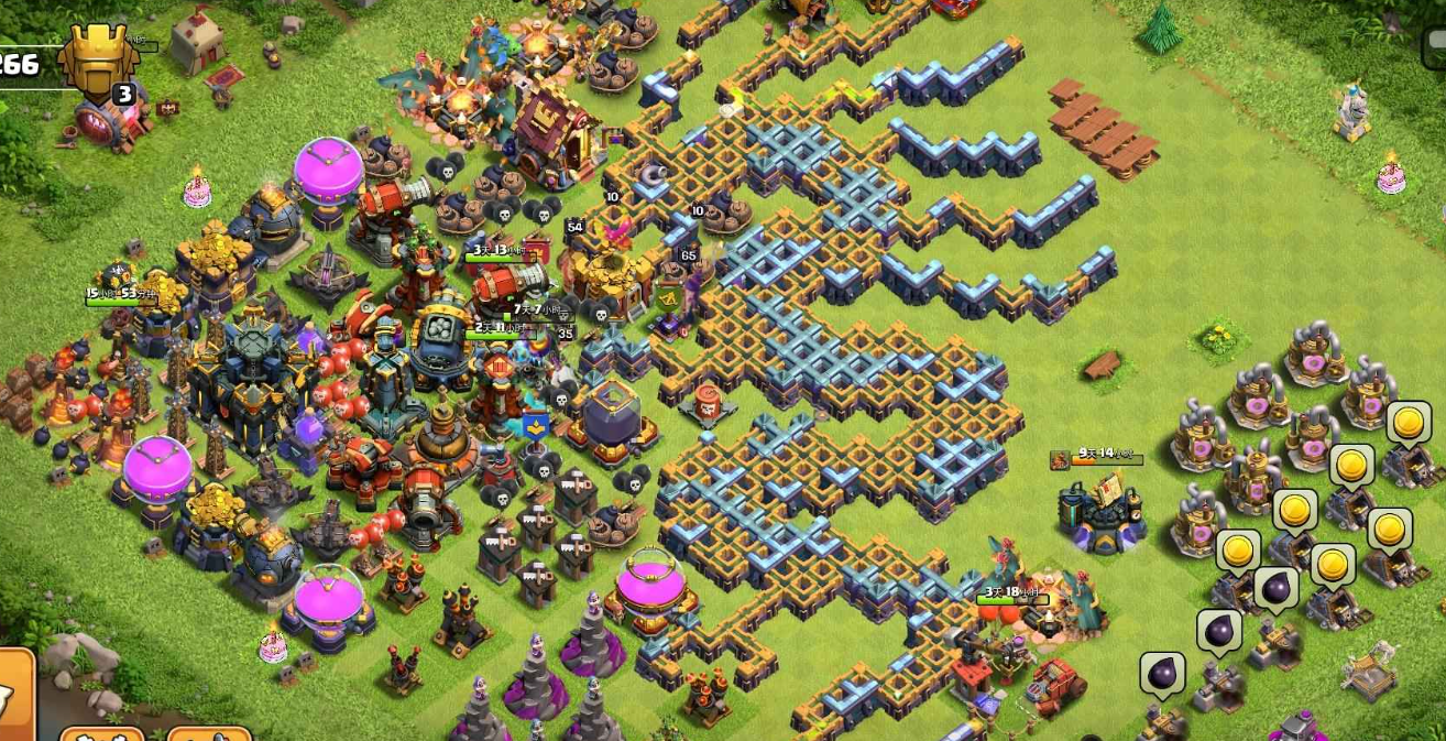 空中流派侧重雷电法术先行摧毁关键防空火箭,火龙搭配气球抱团推进,借助狂暴法术拉高整体爆发,用冰冻法术限制多头地狱塔大范围灼烧伤害,攻城飞艇携带援军直击敌方核心建筑,快速瓦解阵型防守体系。地面攻坚阵容以石头人作为前排承伤,蓝胖与女巫联动打出持续溅射与召唤消耗,双王配合大守护者跟进补伤,弹跳法术帮助部队穿梭内墙,治疗法术护住集群地面兵种,抵御投石炮、地狱塔持续压制,全程把控下兵顺序,先引援清剿城堡敌军,再投放主力,最后留存少量亡灵收尾清理残余建筑。