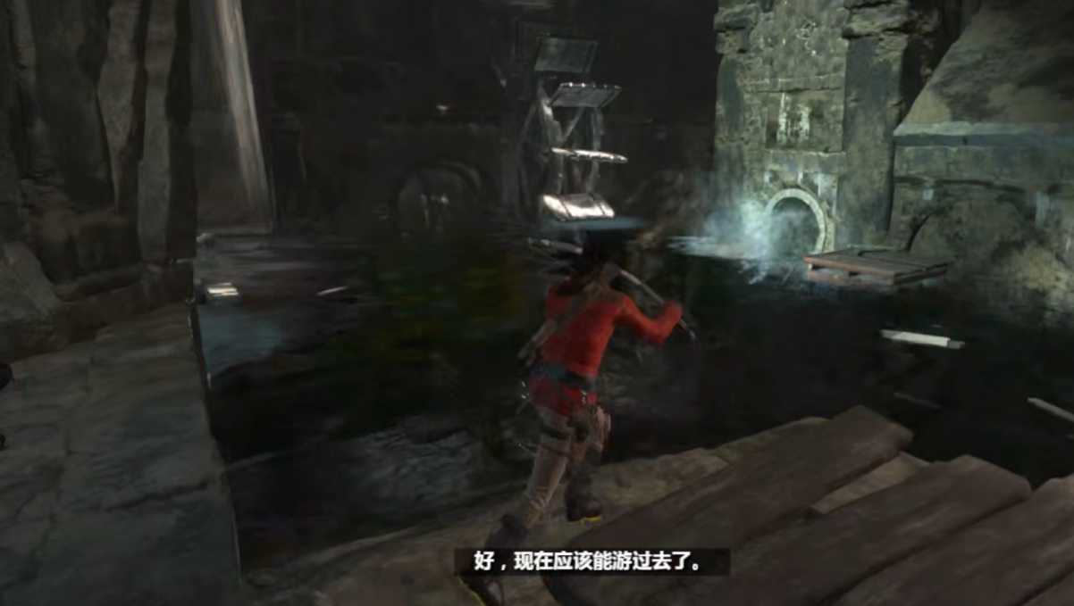 主场景解谜需分阶段释放水流提升水位。第一阶段需游至圆洞另一侧拾取油桶,将其放置闸门前引爆以释放水流。第二阶段需将油桶抛至水中漂浮木板,待水位回落木板漂至闸门附近时射击引爆。若携带榴弹箭可直接炸毁闸门跳过此步骤。第三阶段需游过新水道攀爬至上方破开石壁,最终水位足够时进入穹顶获取手抄本学习技能自然本能。解谜过程中需注意环境互动节奏,尤其是木板漂流与闸门位置的时机判断。