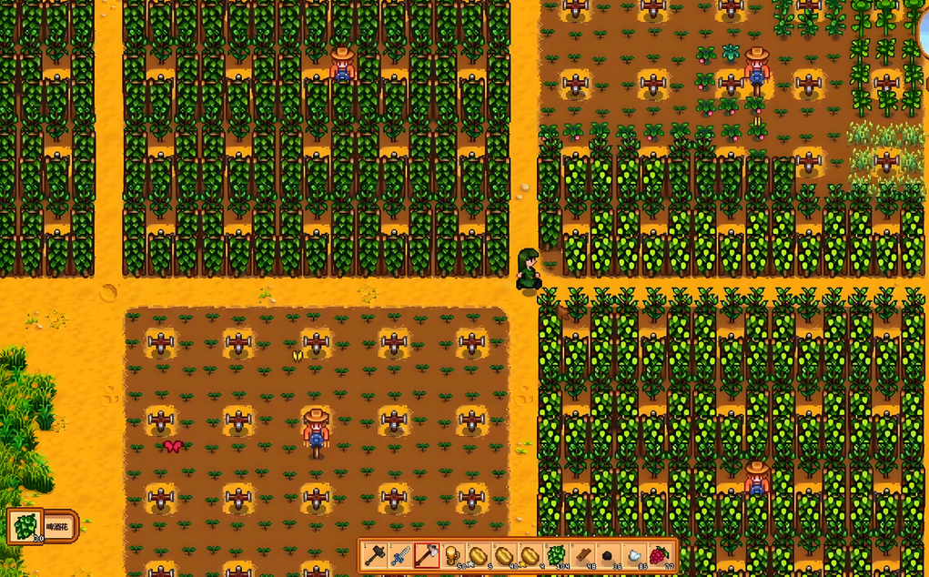 肥料使用和农场管理对夏季种植至关重要。在种植前施用肥料能显著提高作物品质,普通作物与金星作物的比例几乎能翻倍。稻草人必须尽早摆放以防止乌鸦偷菜,特别是对高价值作物如蓝莓和甜瓜。升级水壶应在雨天前进行,避免因浇水不及时导致作物枯萎。合理规划农田区域,为持续收获作物留出专用地块。