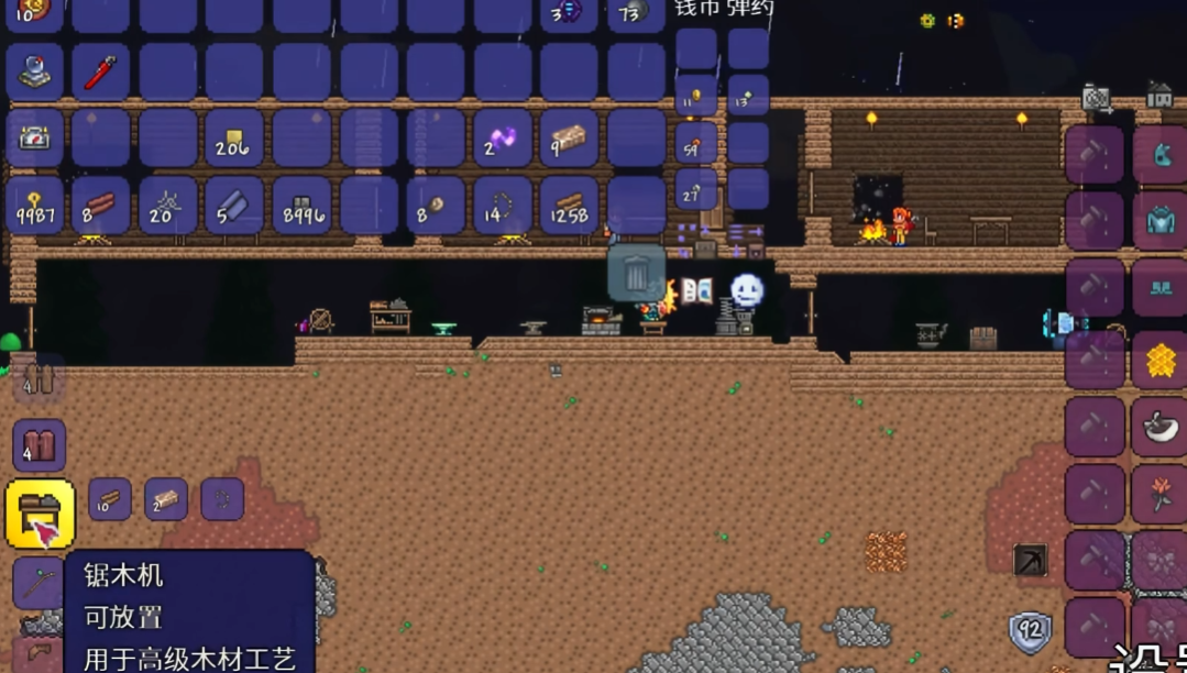 制作泰拉瑞亚锯木机需要准备10个任意种类的木材、2个任意类型的铁锭以及1根链条。这些材料需在工作台上进行合成操作,其中链条可通过铁砧将1个铁锭分解为10根链条获得。锯木机作为3格宽3格高的物品,必须放置在实心块或平台上才能正常使用。