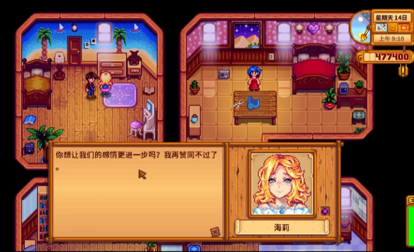触发海莉的八星事件需要满足三个核心条件:友谊等级达到8心、晴朗天气(冬季除外)以及上午10点至下午4点的时间段。该事件会在玩家进入海莉家时自动触发,无需额外操作。事件中海莉会展示她的摄影作品,这是她敞开心扉的重要标志,对话选择直接影响后续关系发展。完成八星事件后,海莉的日常对话会变得更加亲密,并解锁新的互动选项。