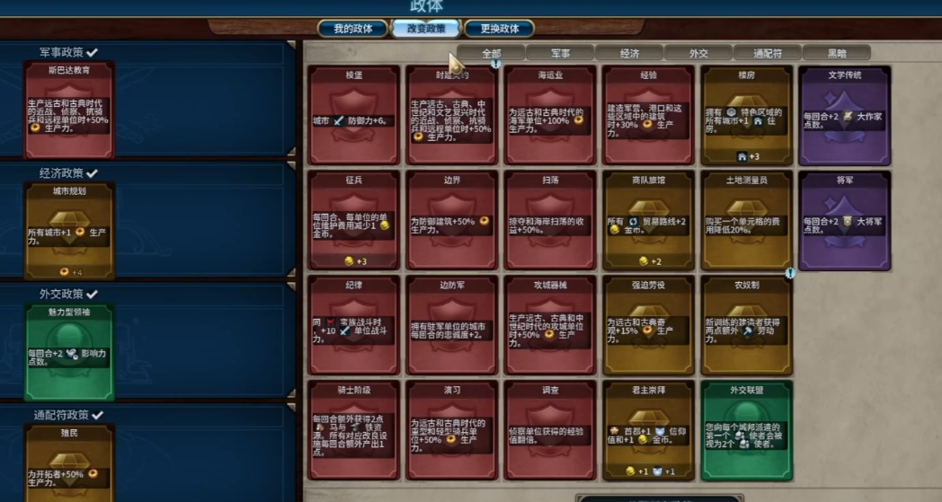 政策卡的选择需随发展阶段动态调整,这是放大经济收益的关键杠杆。早期可装备降低单位维护费用的军事政策卡以减少开支。解锁对外贸易市政后,立即启用经济同盟卡使每条商路额外增加金币。进入中期,自由市场卡能使港口与商业中心的相邻加成翻倍,收益提升立竿见影。市政广场的建成则允许你招募总督,其中任命拥有黑市商人能力的总督至城市,能通过砍伐森林收获大量金币和生产力,实现爆发式增长。